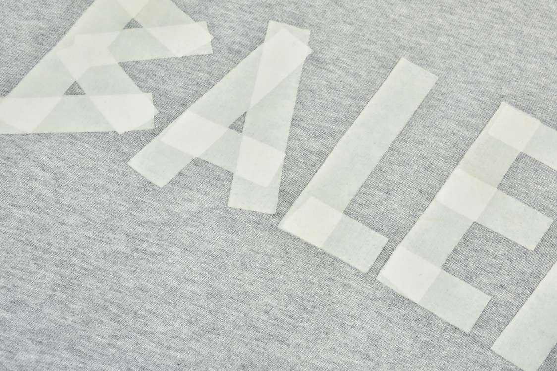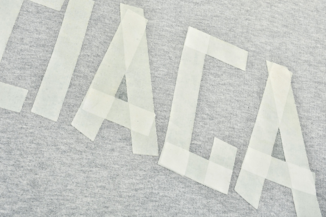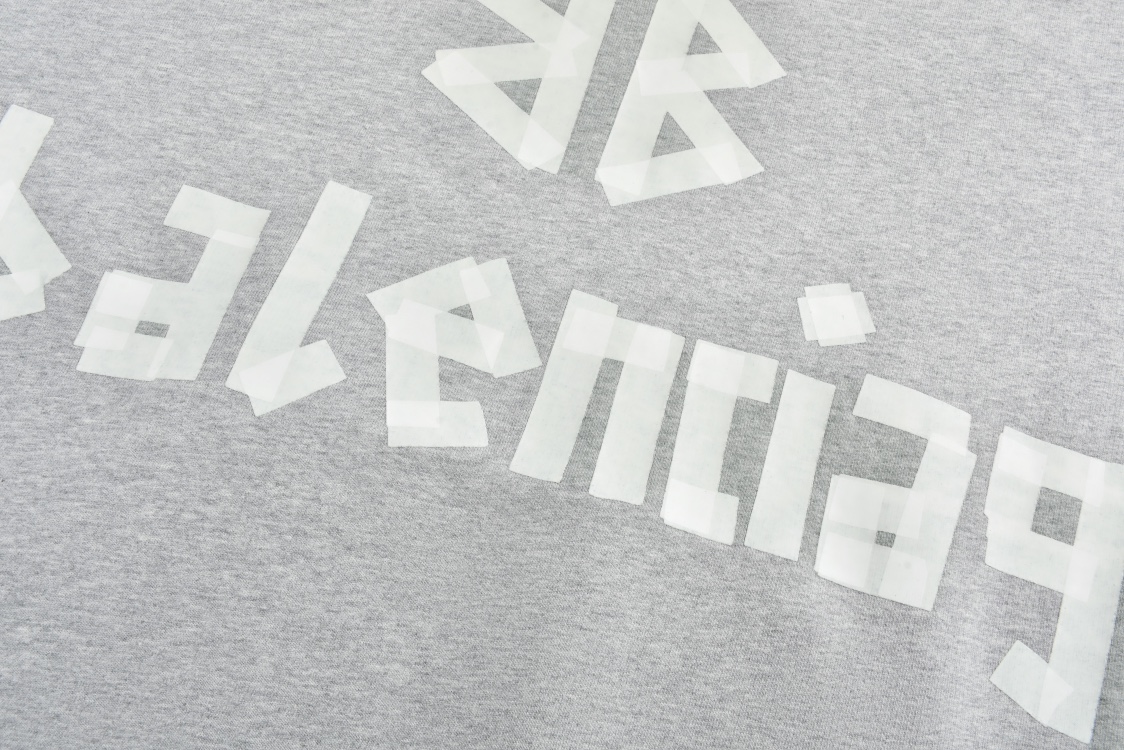 後背膠帶字母運用最新版本電腦印花系統製作,透過電腦掃描開發印花菲林,並使用極細紗網材質製作菲林網版,能極大還原所有網點細節與字母間距。