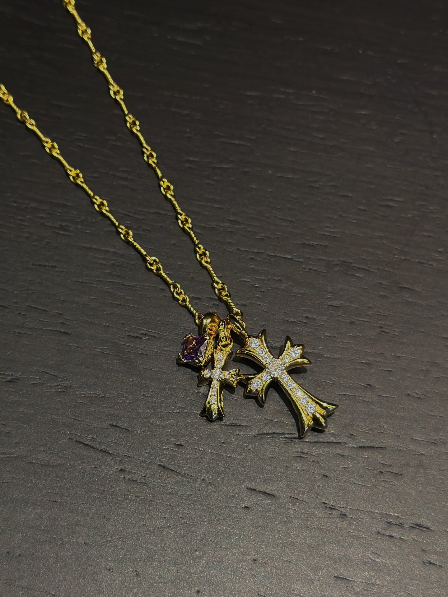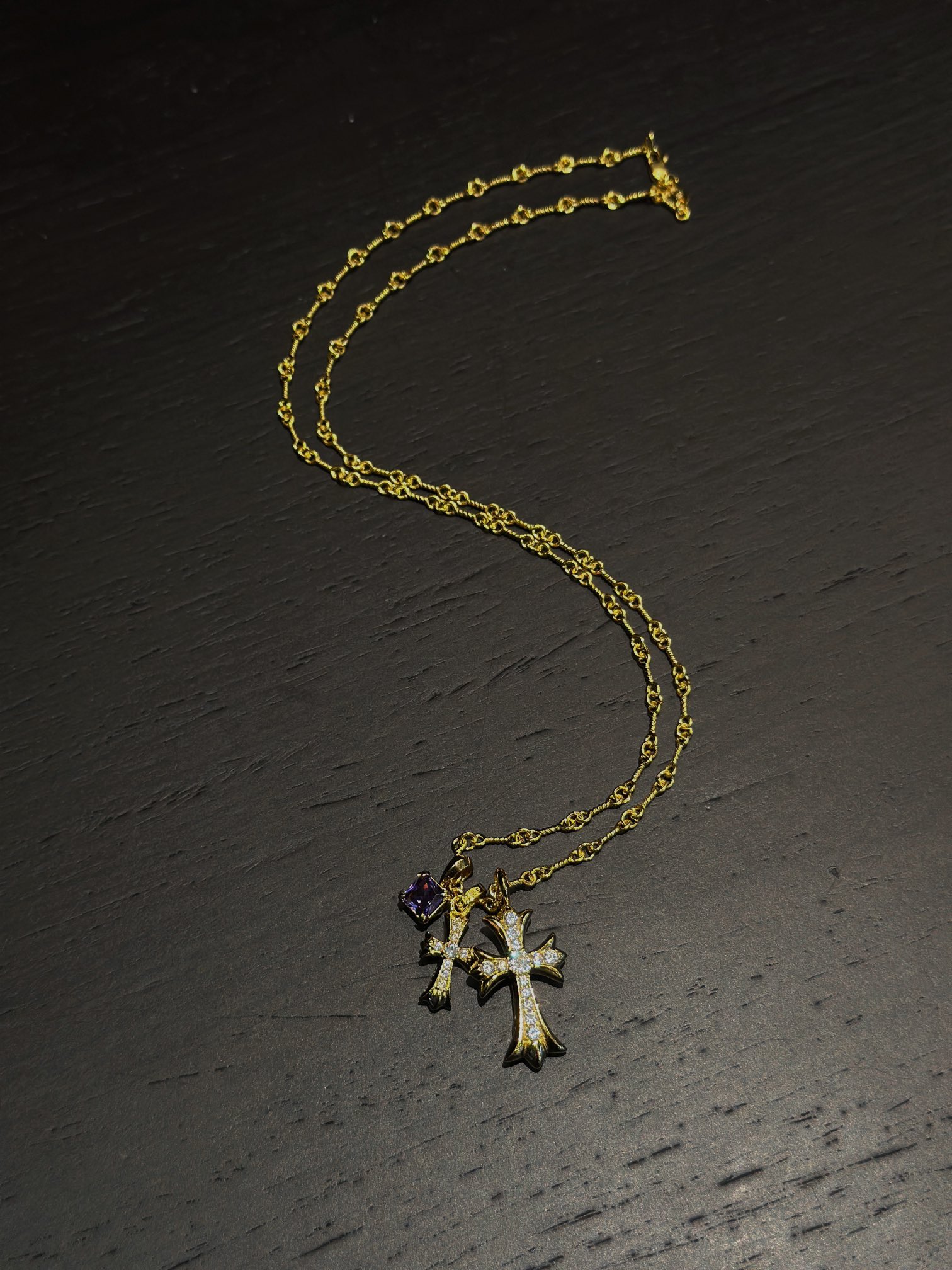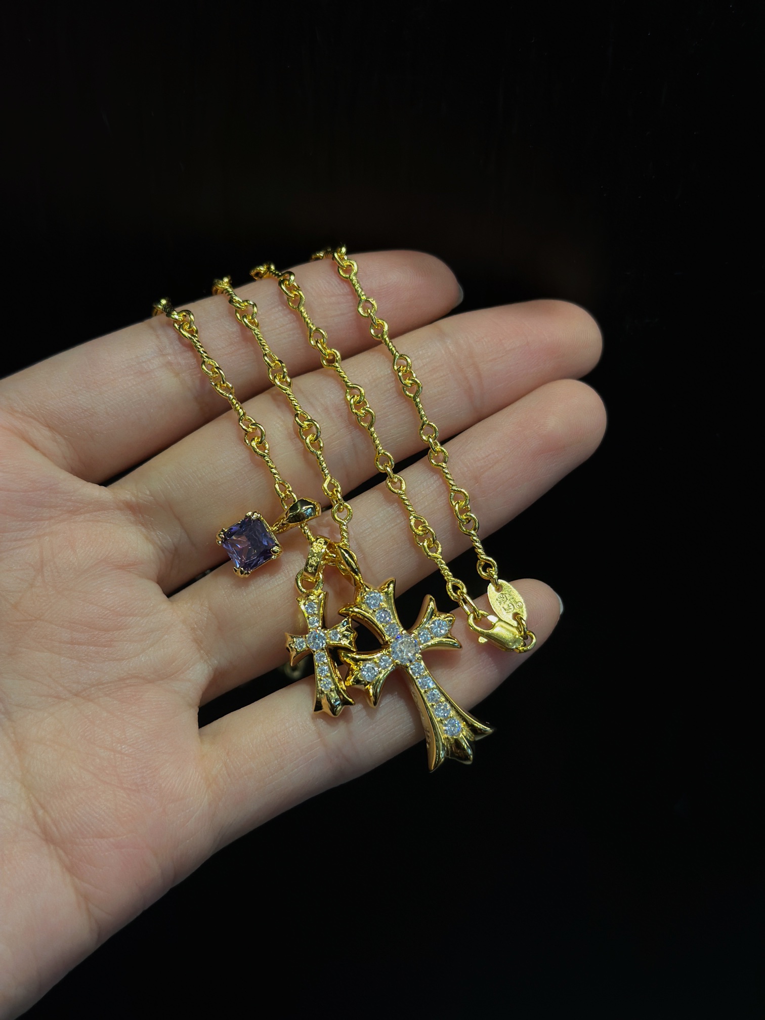 (編號 200500),以品牌標誌性設計為核心,搭配新款紫鑽與別針小十字架套鏈結構,僅提供 45cm 鎖骨鏈長度,上身效果出色,是夏日兼具甜酷風與精緻感的男女通用配飾。