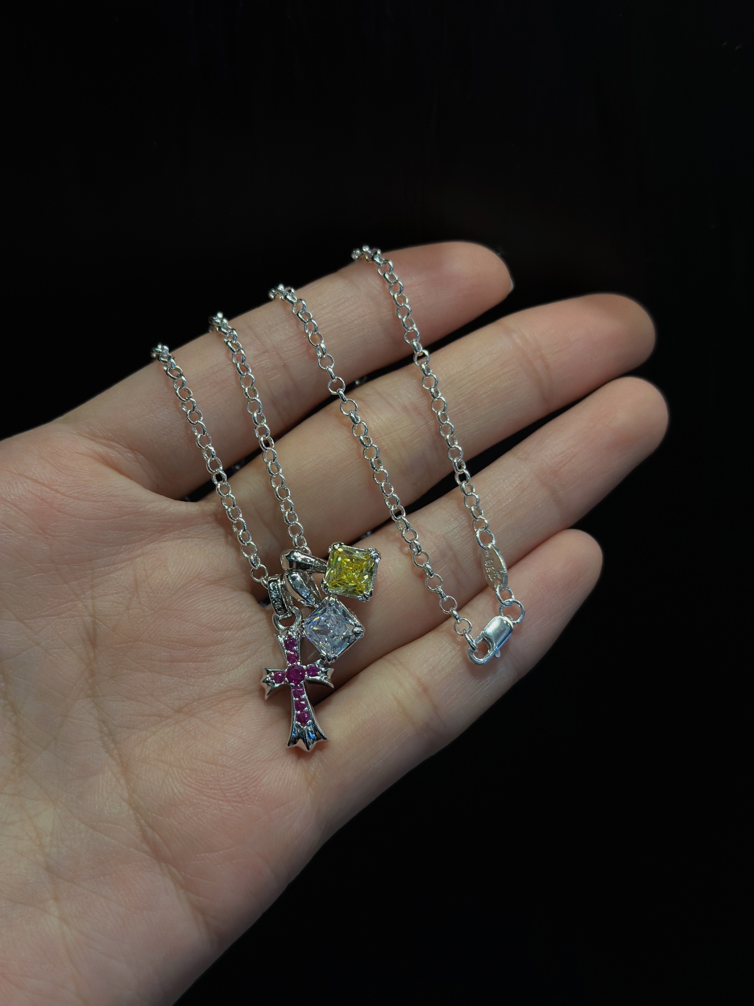 搭配新款方糖黃鑽、白鑽及紅鑽小十字架設計,上身效果出色,是夏日熱門配飾。提供 45cm、55cm、65cm 三種鍊條長度,產品編號為 200460,男女通用且風格可匹配多元場景。