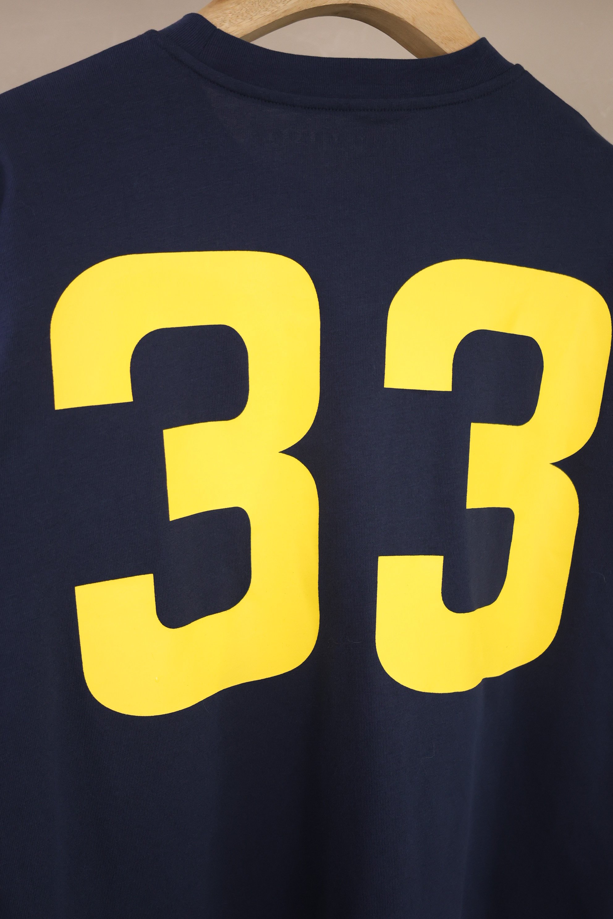胸前馬蹄鐵 Logo 印花,後背大號數字「33」+卷軸圖騰,神秘感十足