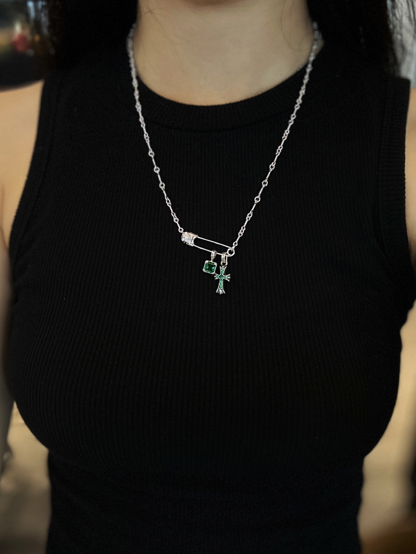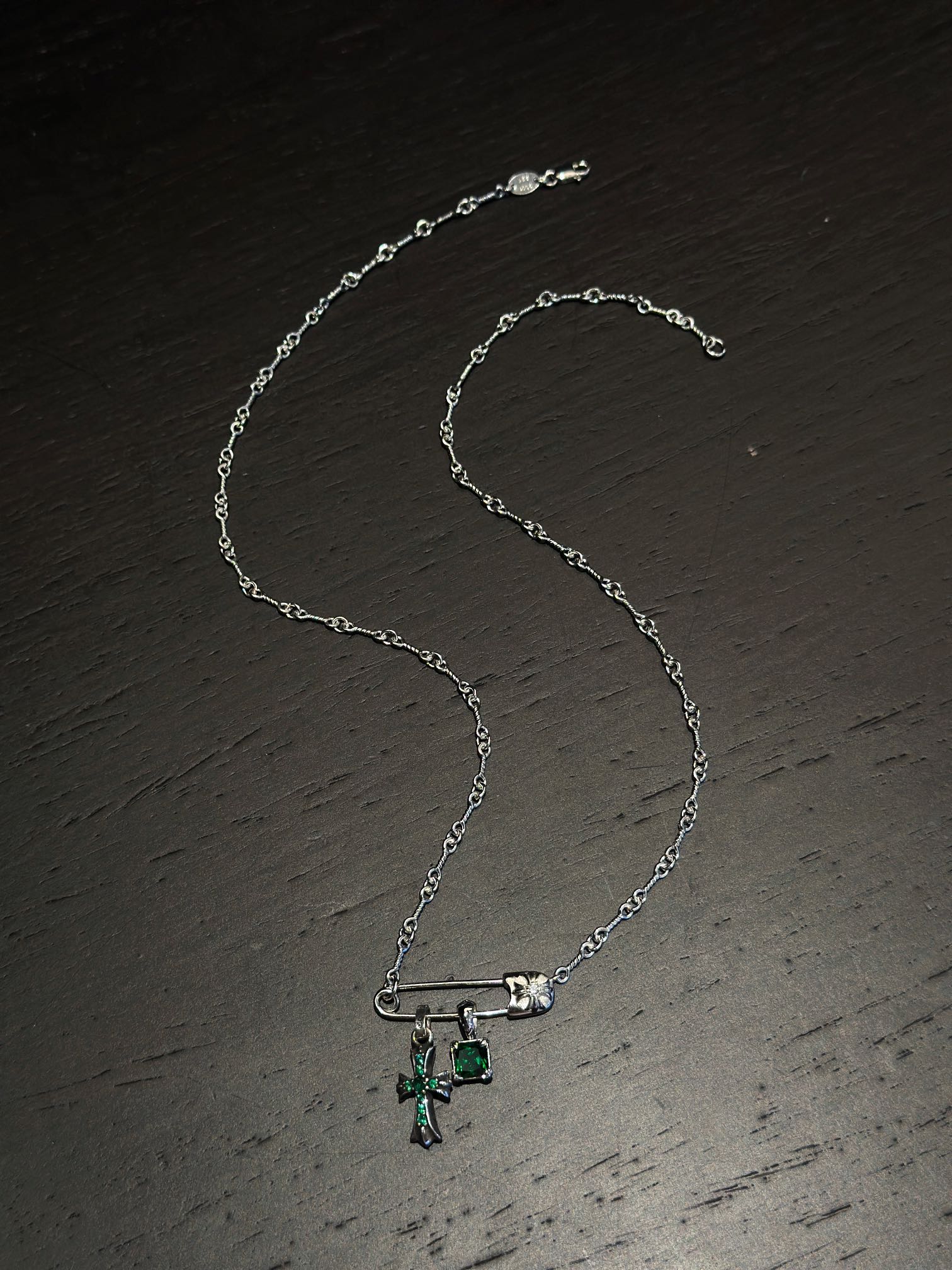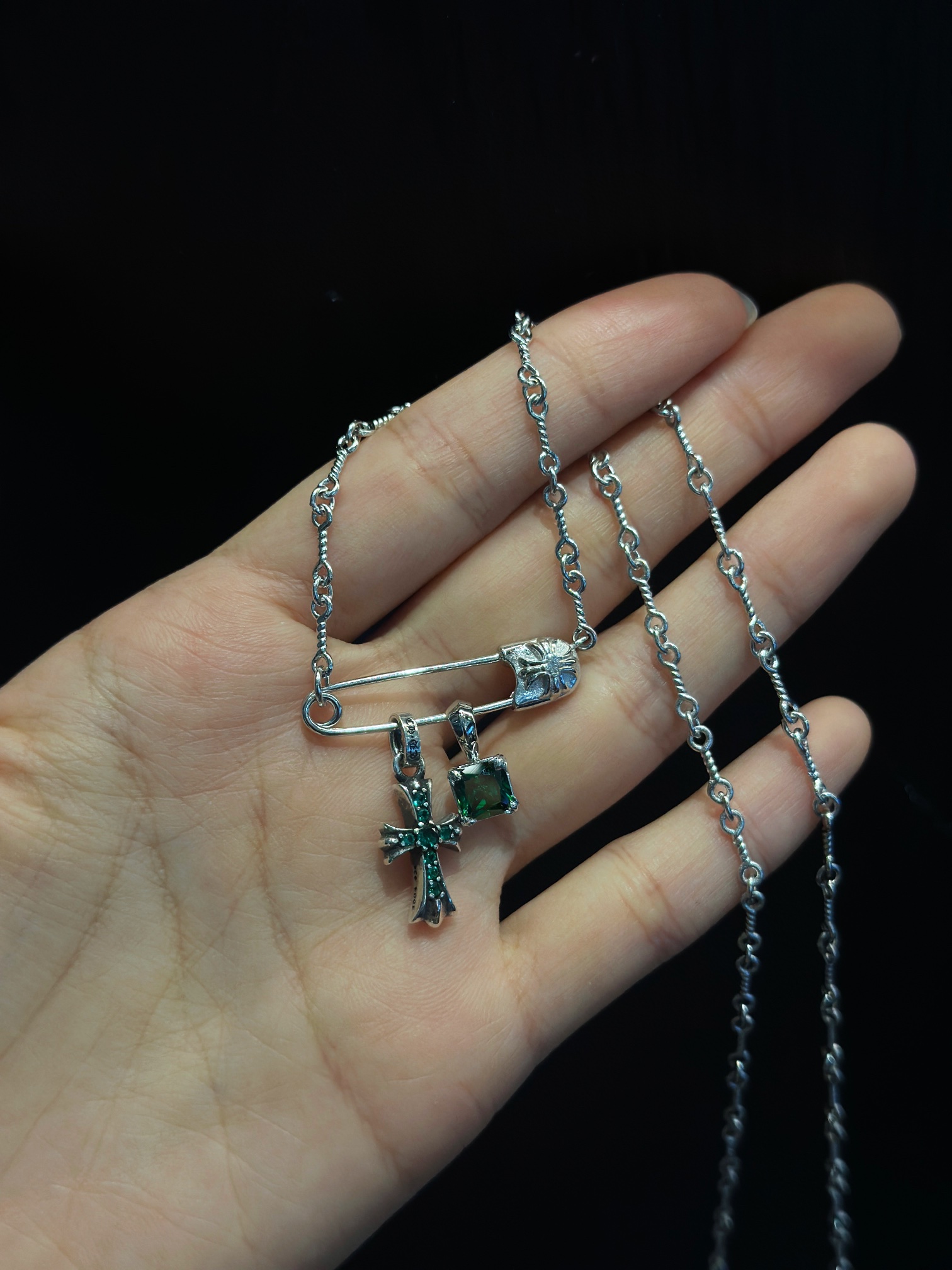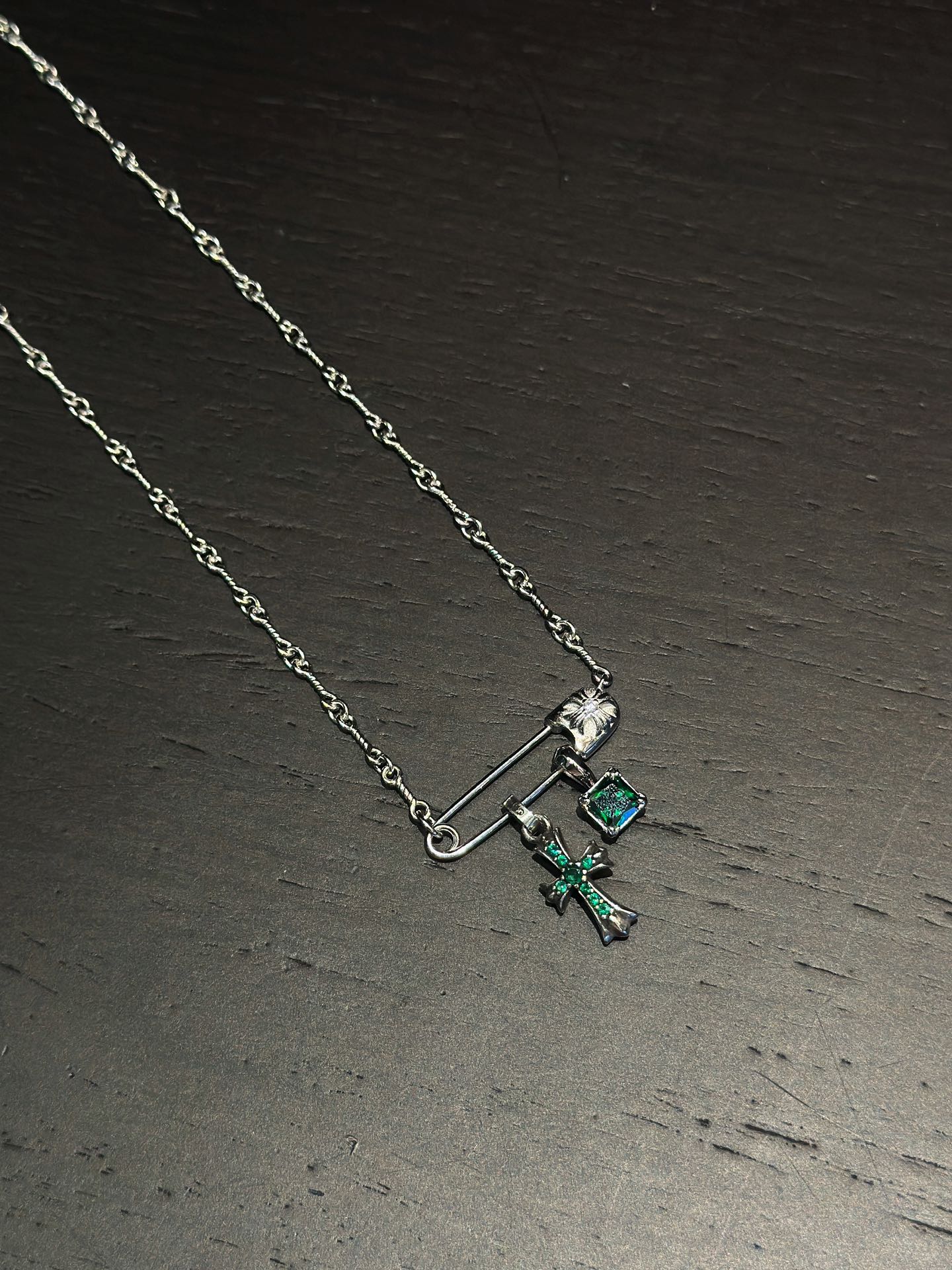 Chrome Hearts(CH / 克羅心)別針十字架鍍金方糖項鍊(綠銀)