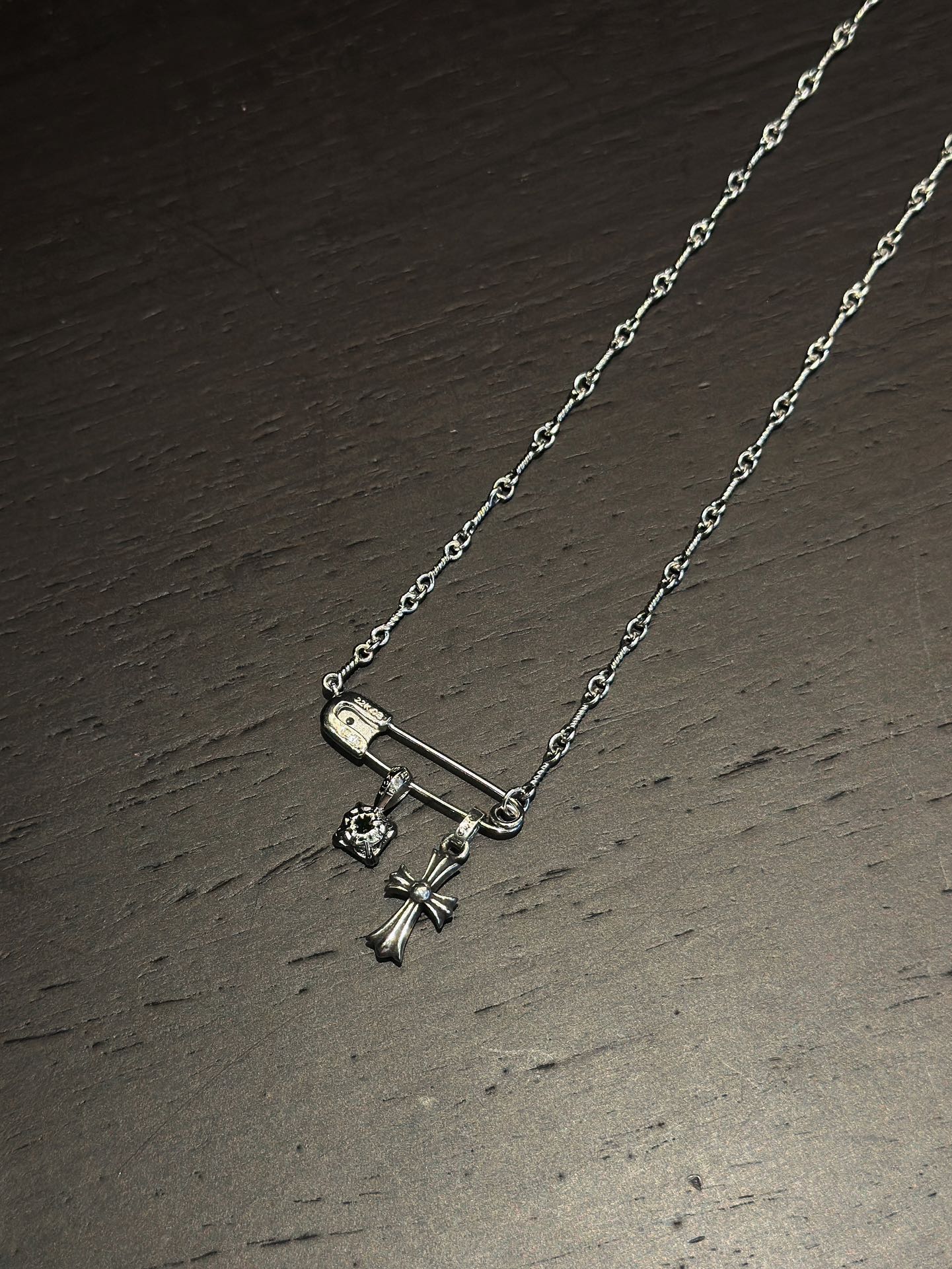 Chrome Hearts(CH / 克罗心)别针十字架镀金方糖项链(綠銀)