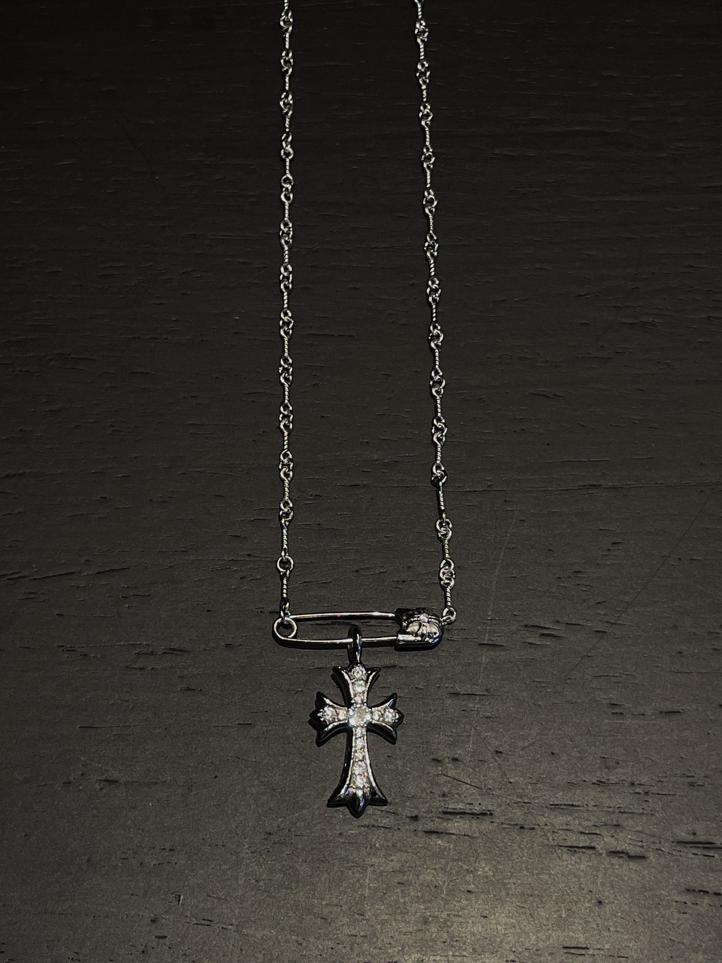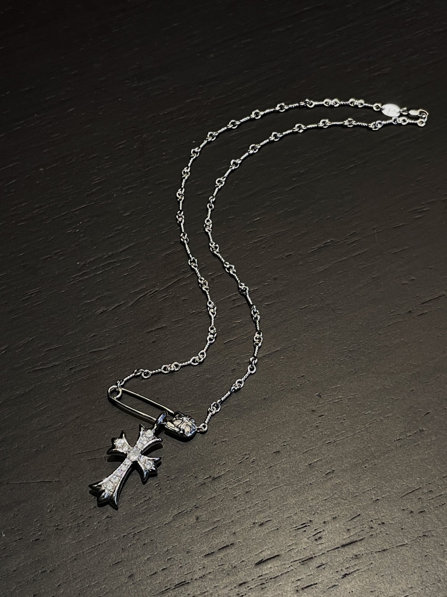 Chrome Hearts(CH / 克羅心)銀鍍白金鑲石別針十字項鍊