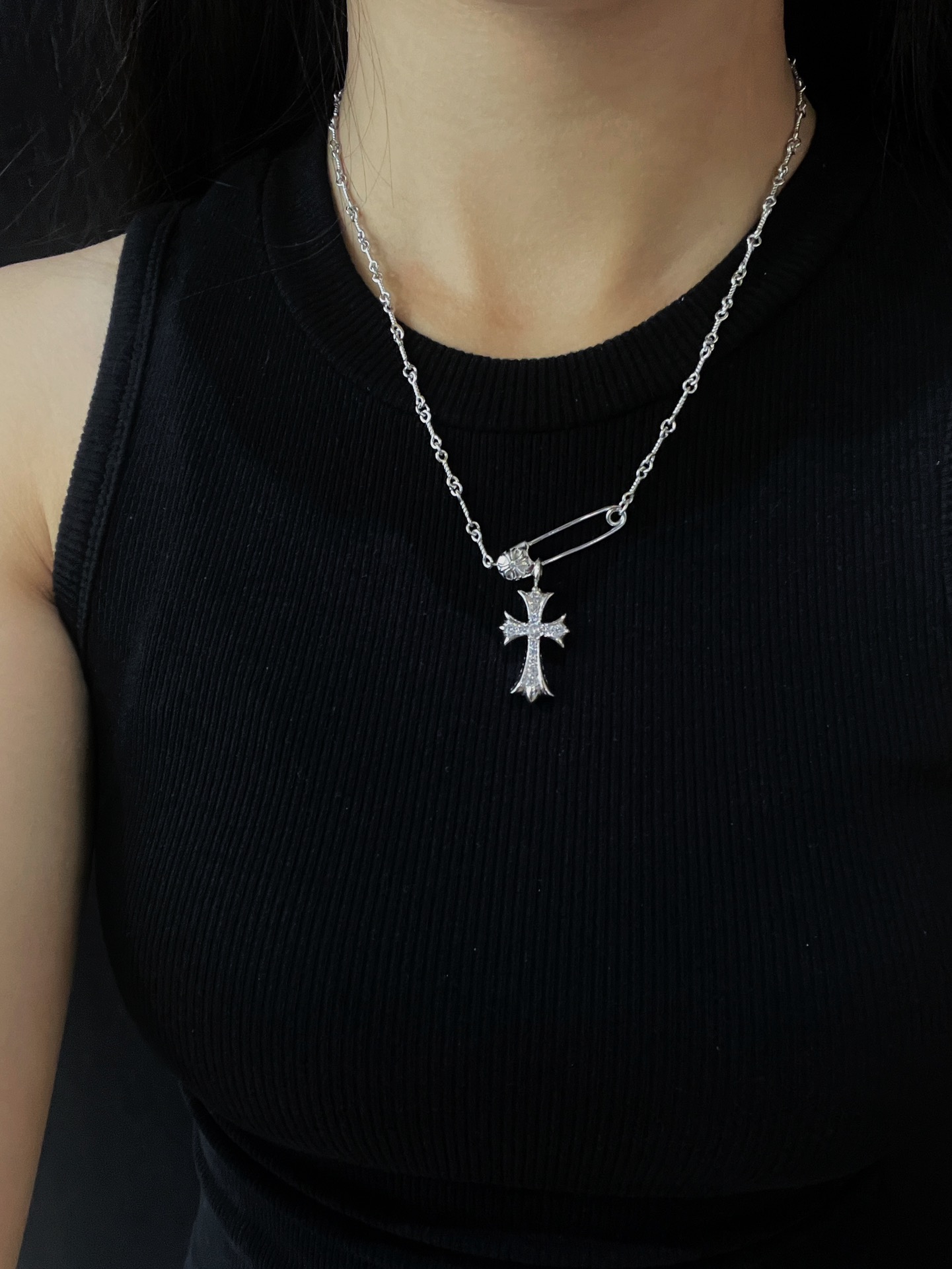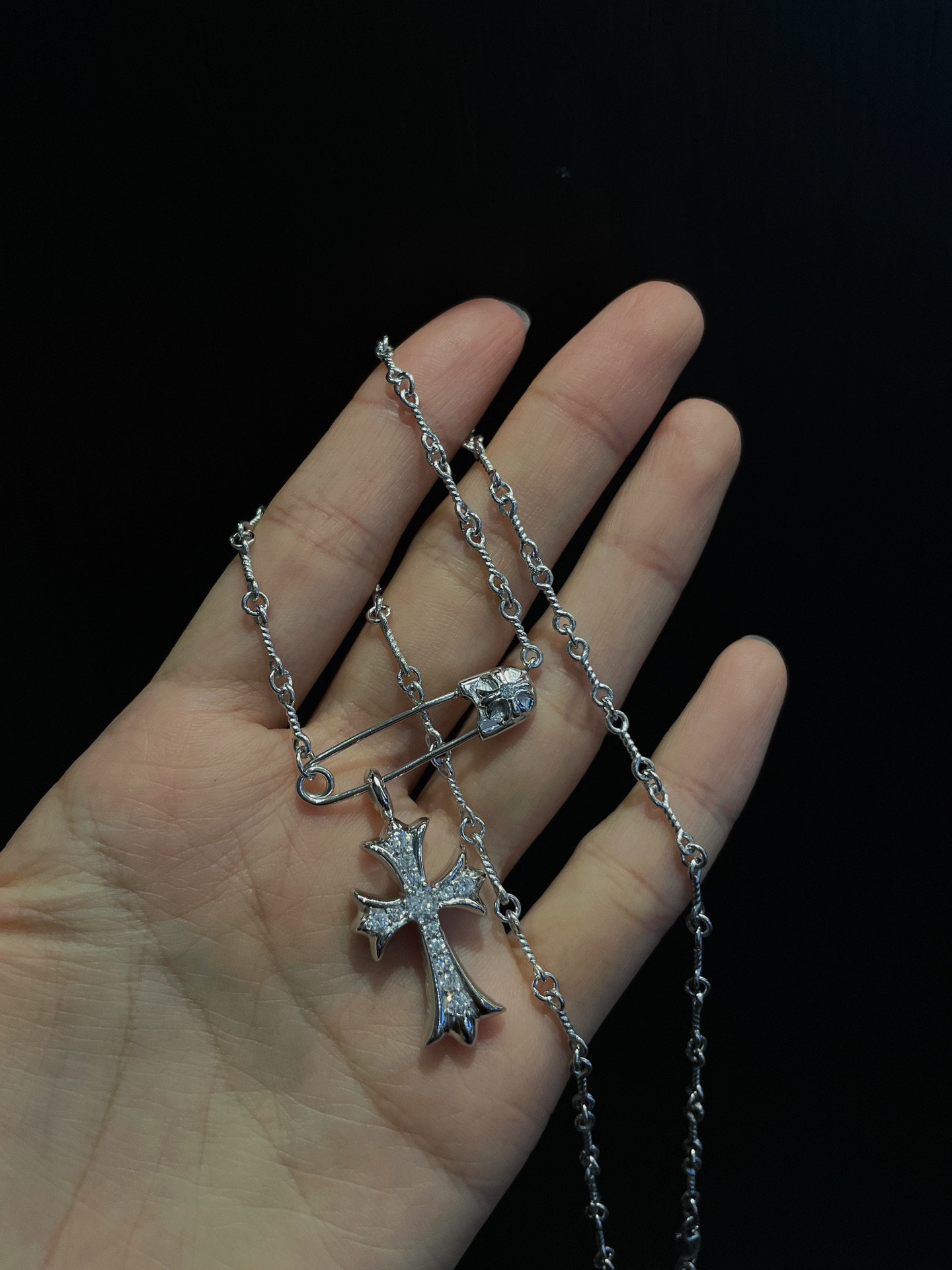 Chrome Hearts(CH / 克羅心)銀鍍白金鑲石別針雙十字項鍊 Chrome Hearts(CH / 克羅心)銀鍍白金鑲石別針雙十字項鍊 Chrome Hearts(CH / 克羅心)銀鍍白金鑲石別針雙十字項鍊 Chrome Hearts(CH / 克羅心)銀鍍白金鑲石別針雙十字項鍊