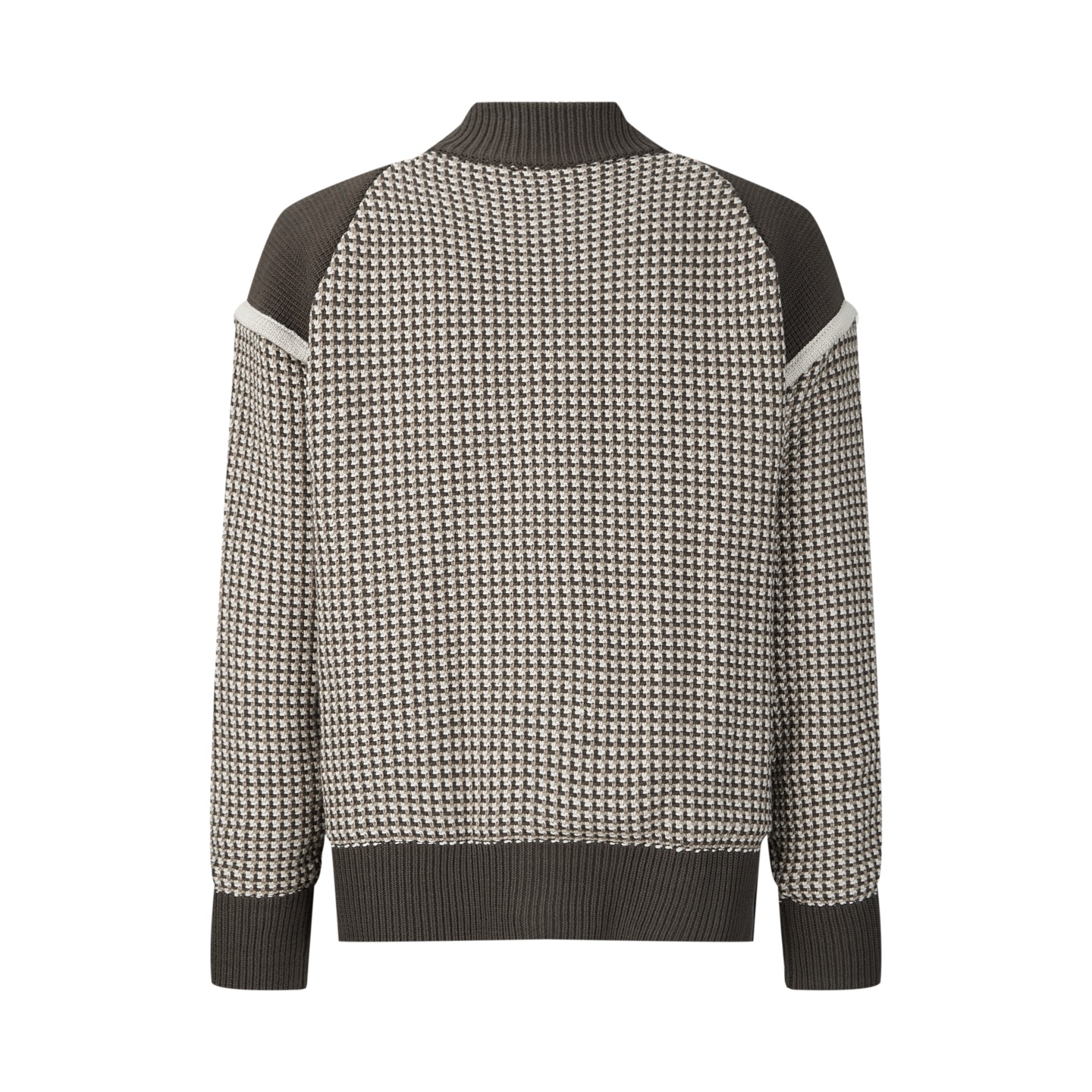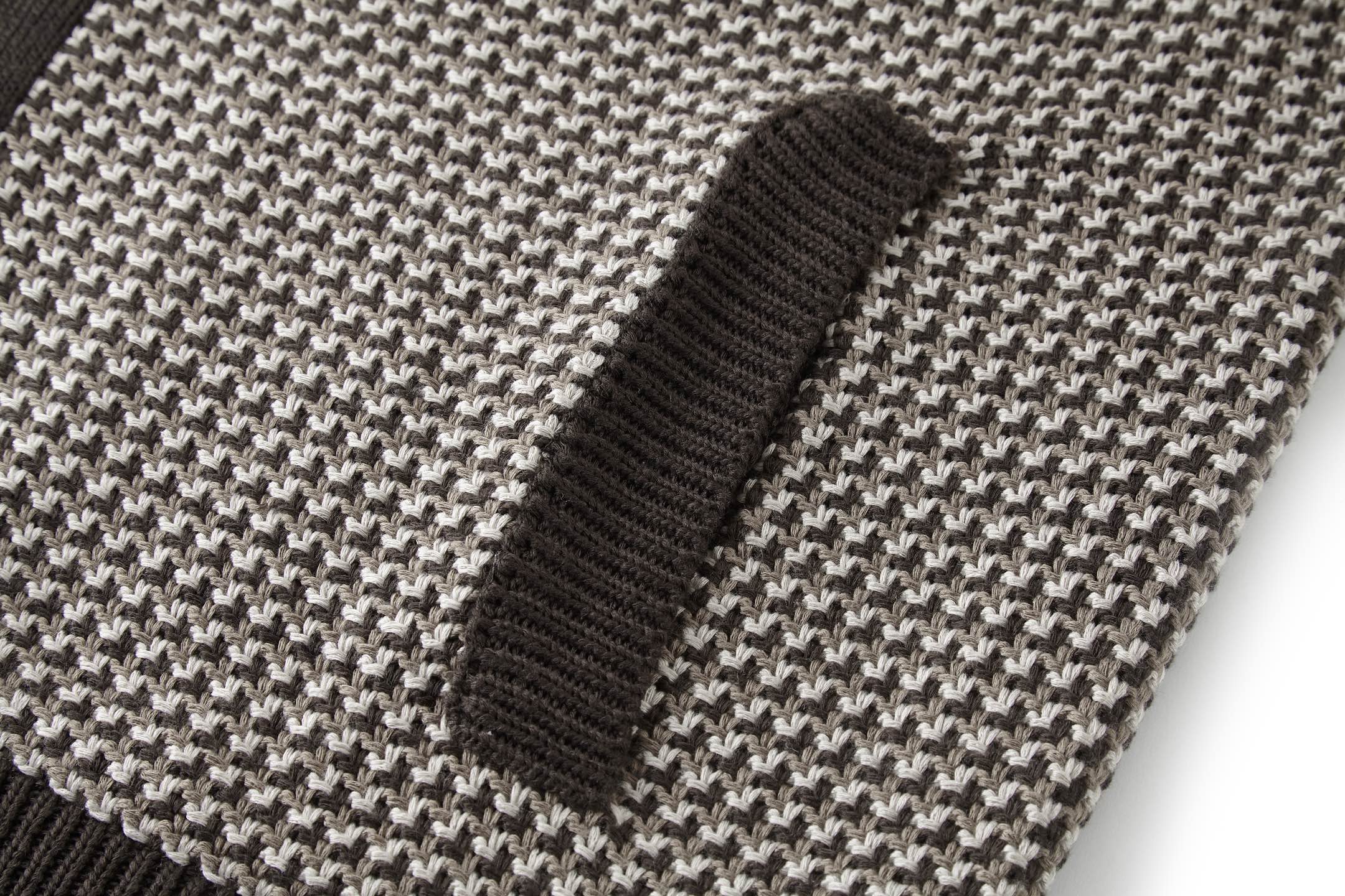 • 工藝:此款服裝選用定染毛紗,其中米白色毛紗經過配套染色處理;格紋圖案透過進口機器織造而成,呈現出立體的 3D 提花效果。
