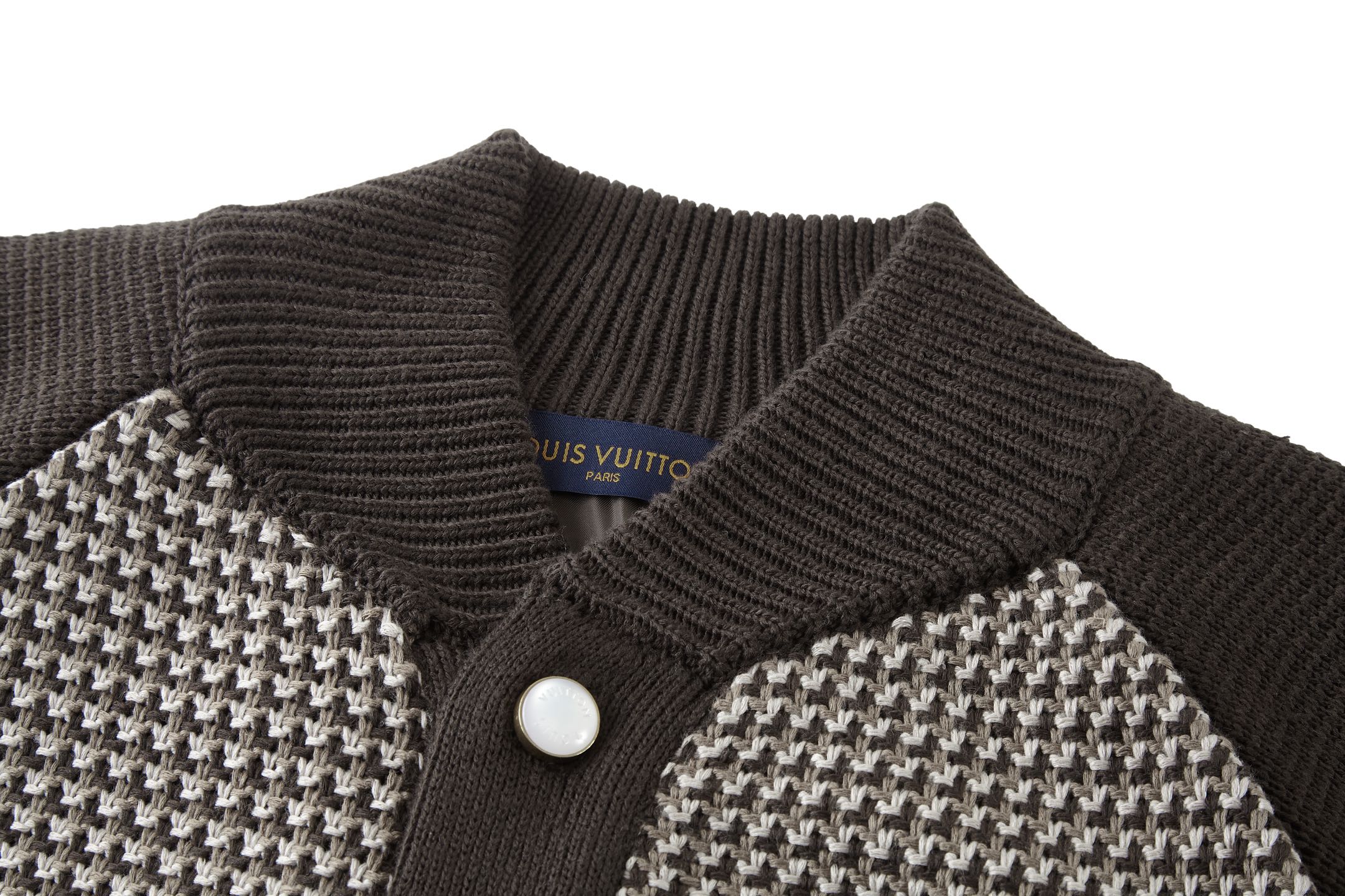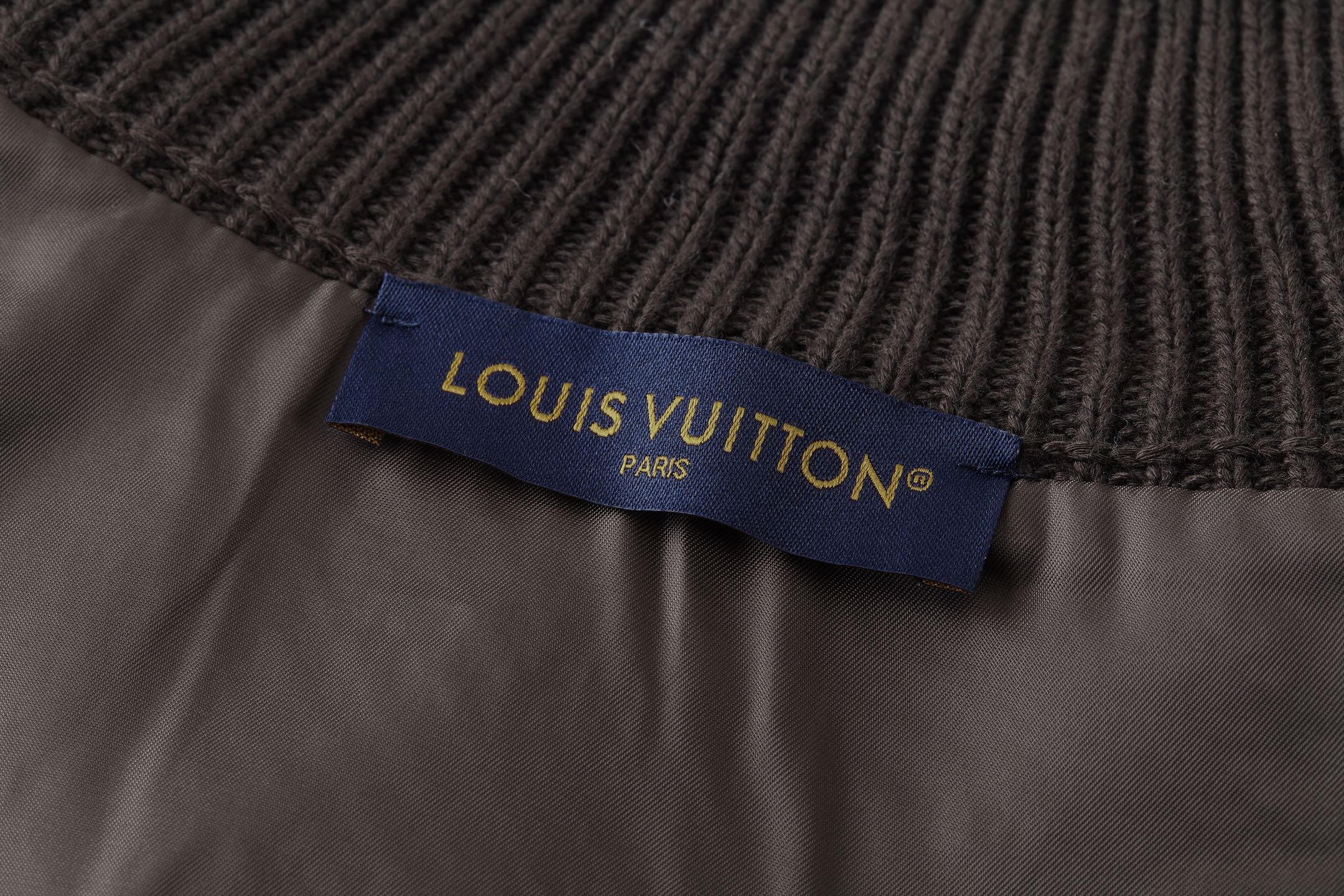 • 此款棉質飛行員針織衫透過鮮明的 LV Stitch 提花織紋勾勒出小巧的 LV 標識,再以優雅的羅紋設計修飾衣領、連肩袖與口袋。衣身的「Marque L.Vuitton Déposée」貼飾為細節點睛,珠光紐扣則注入優雅紳士(丹迪)風範,成為換季時節疊穿搭配的優質選擇。