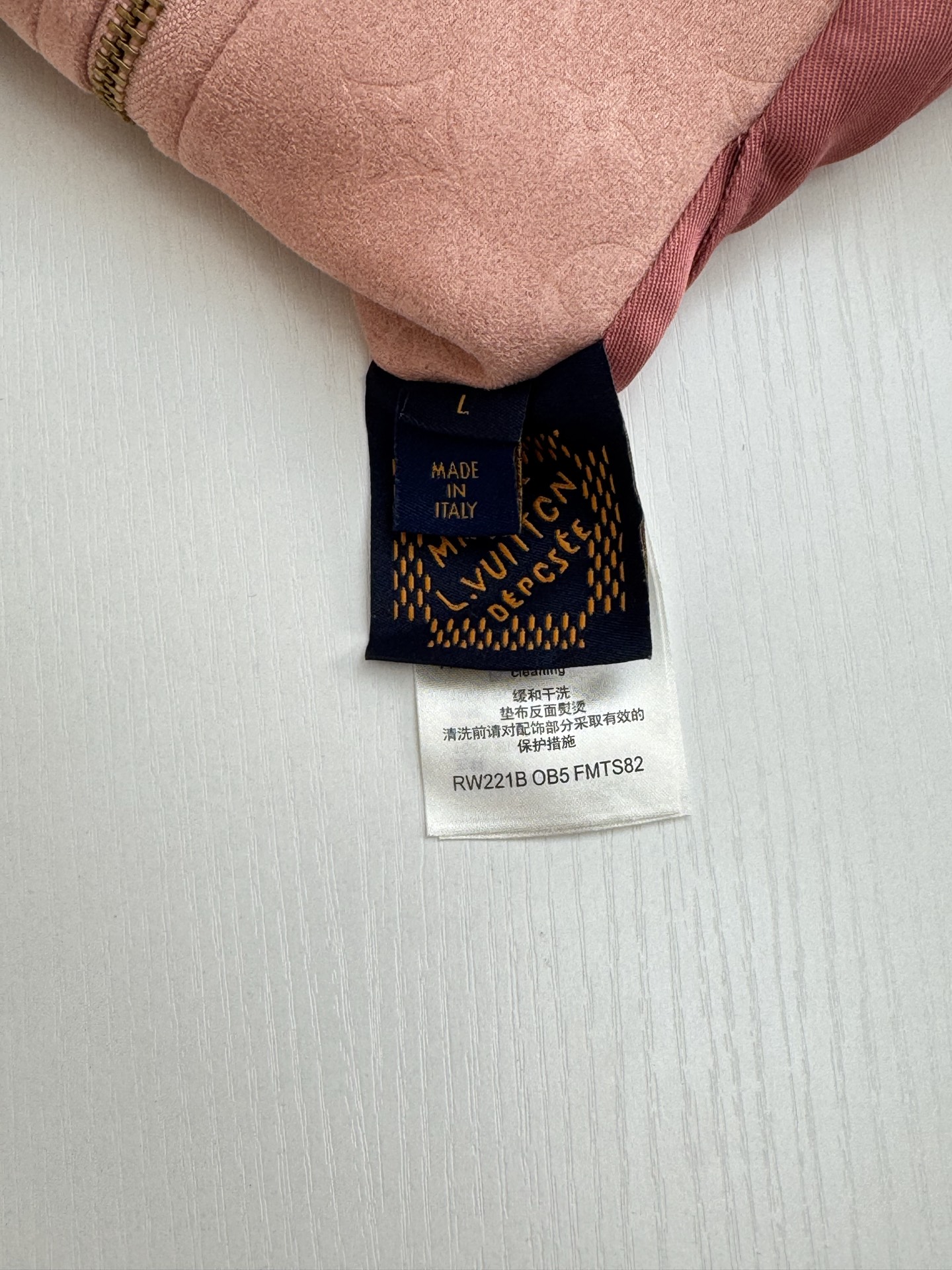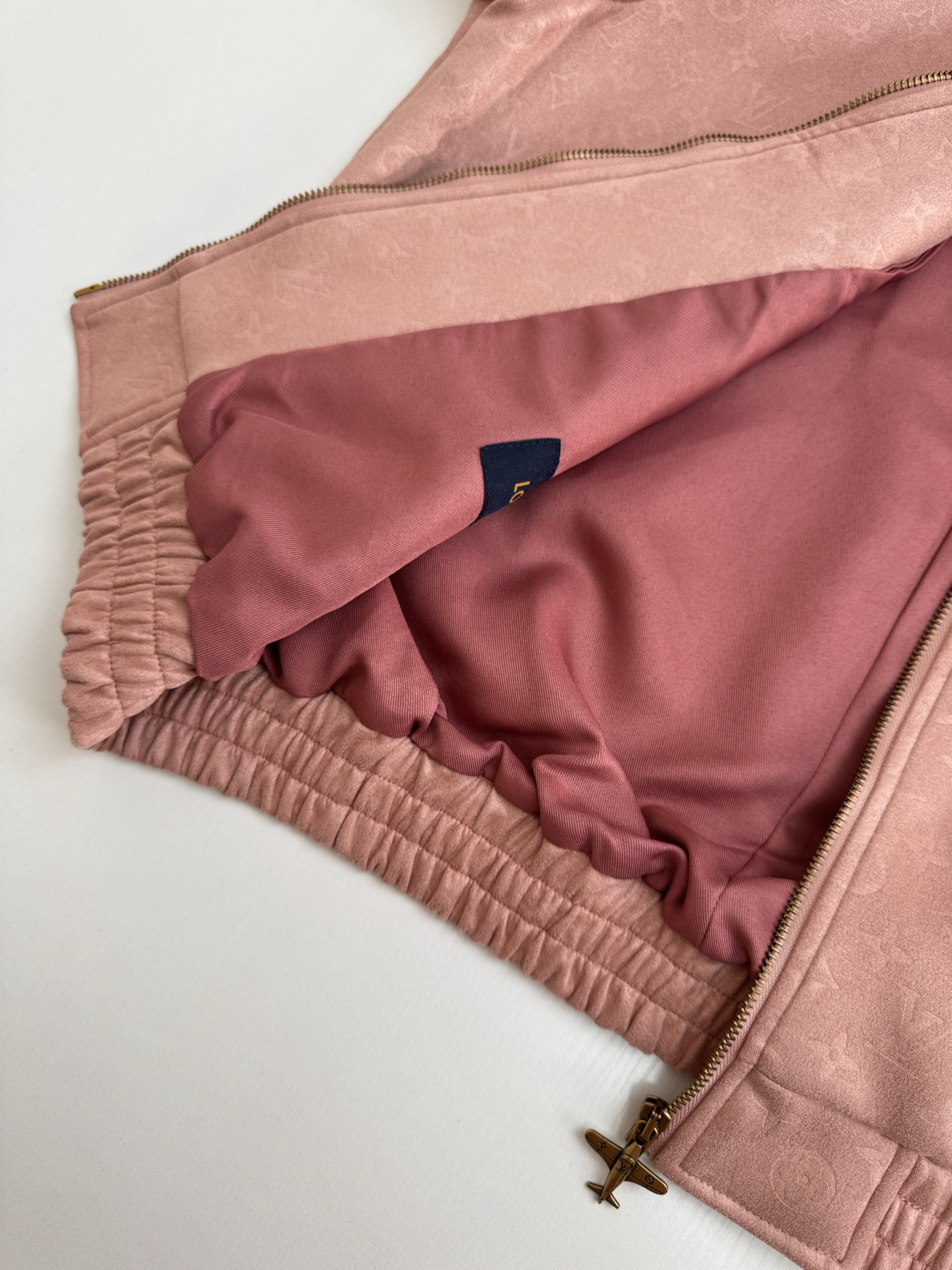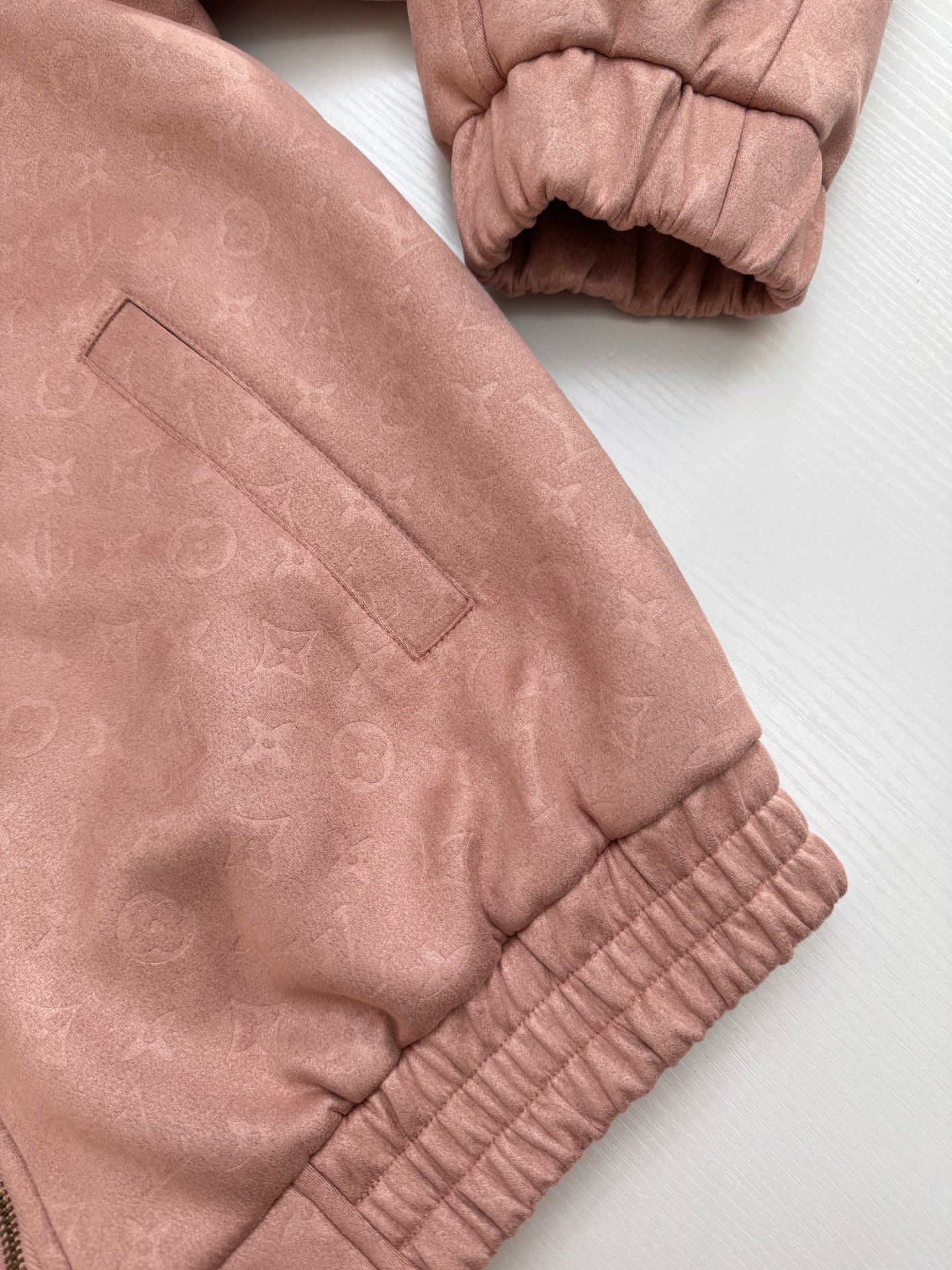 • 面料採用 100% 聚酯纖維。衣身滿佈 Monogram 元素,內裡搭配 190 克加密針織布,上身穿著親膚舒適;口袋布選用 40 支精梳棉高密斜紋布,車縫做工精細。