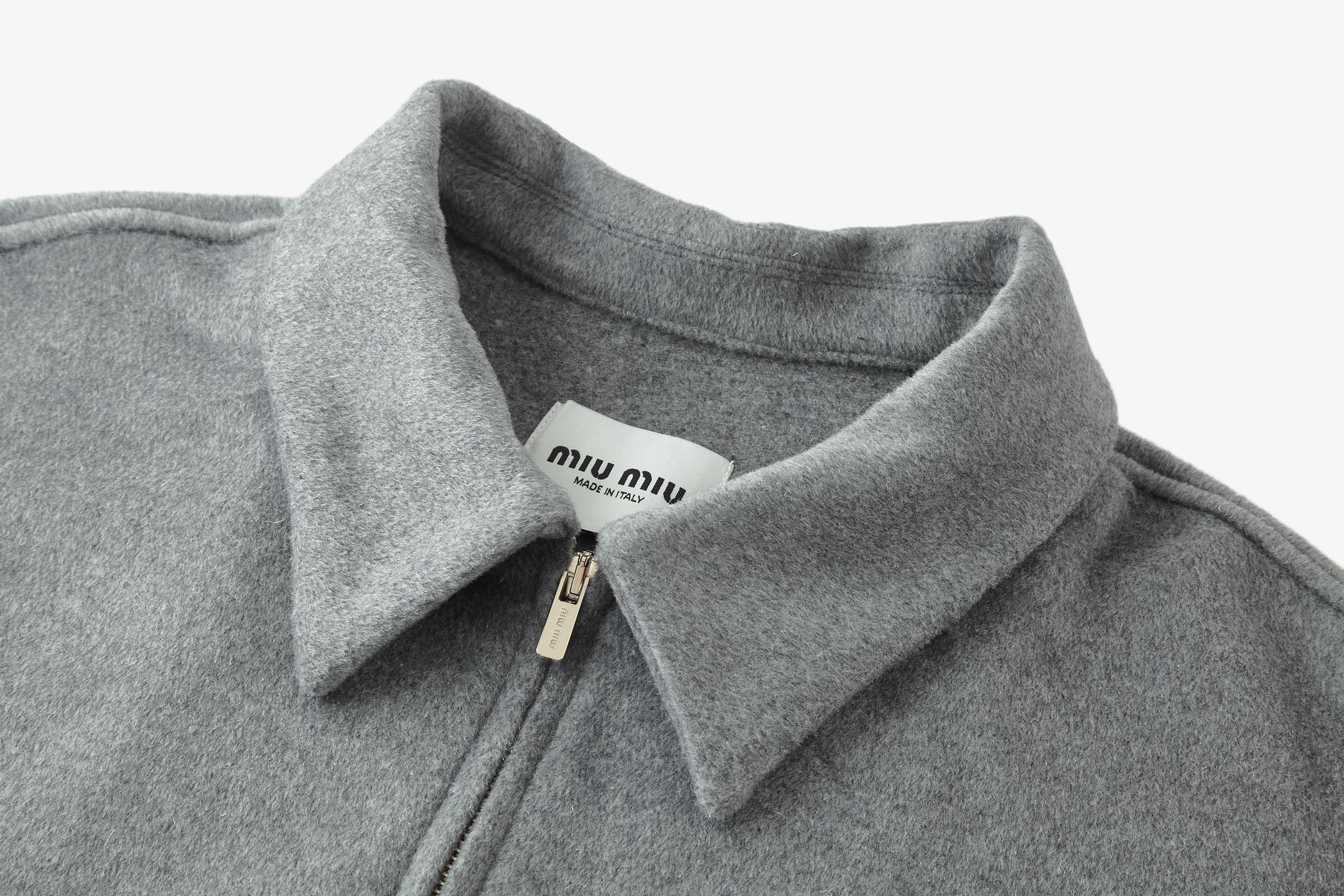 Miu Miu 刺繡標誌翻領羊絨拉鍊外套