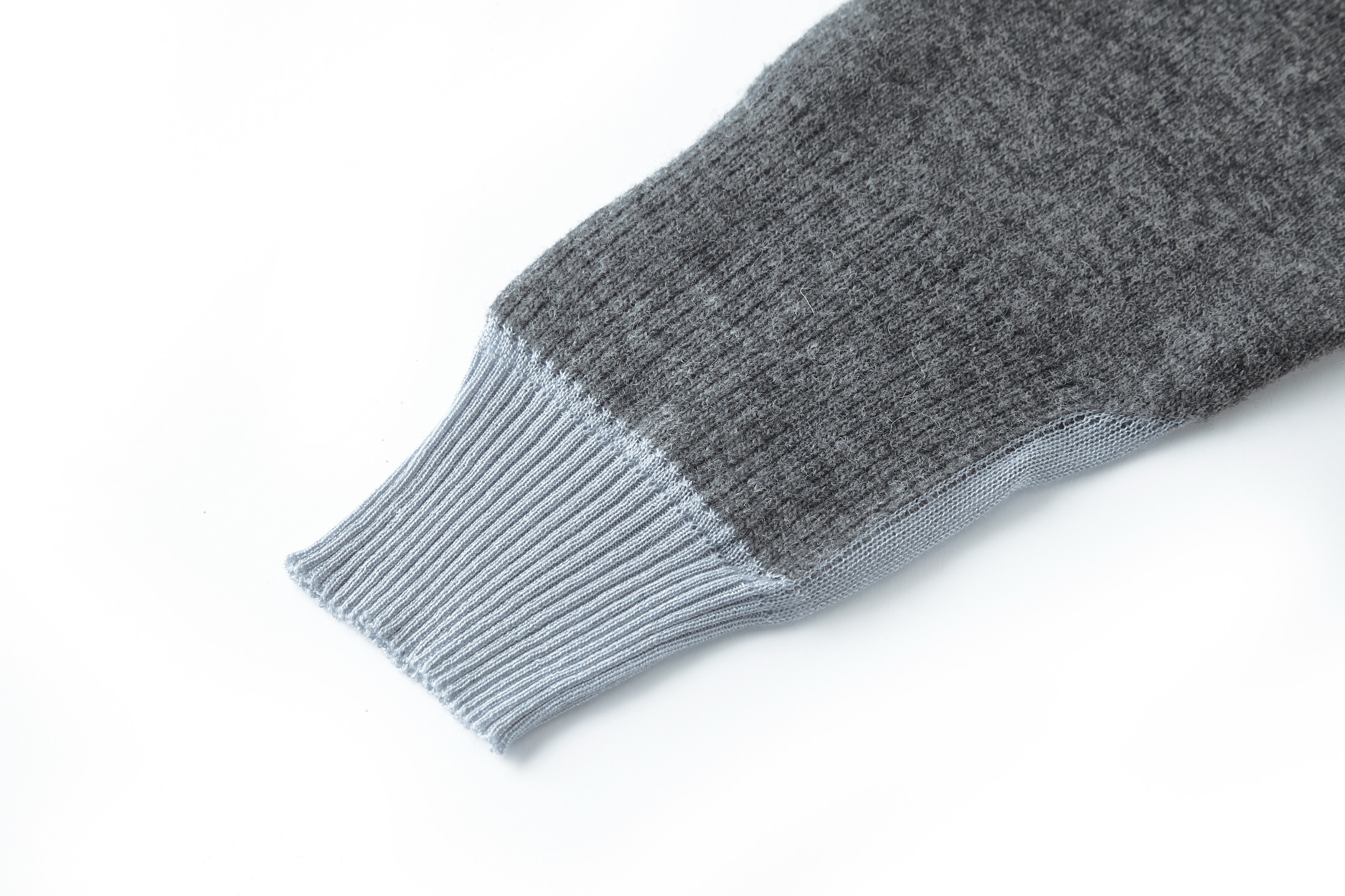 衣身主體以羊絨與棉料編織製作,其餘部分則使用羊毛編織。